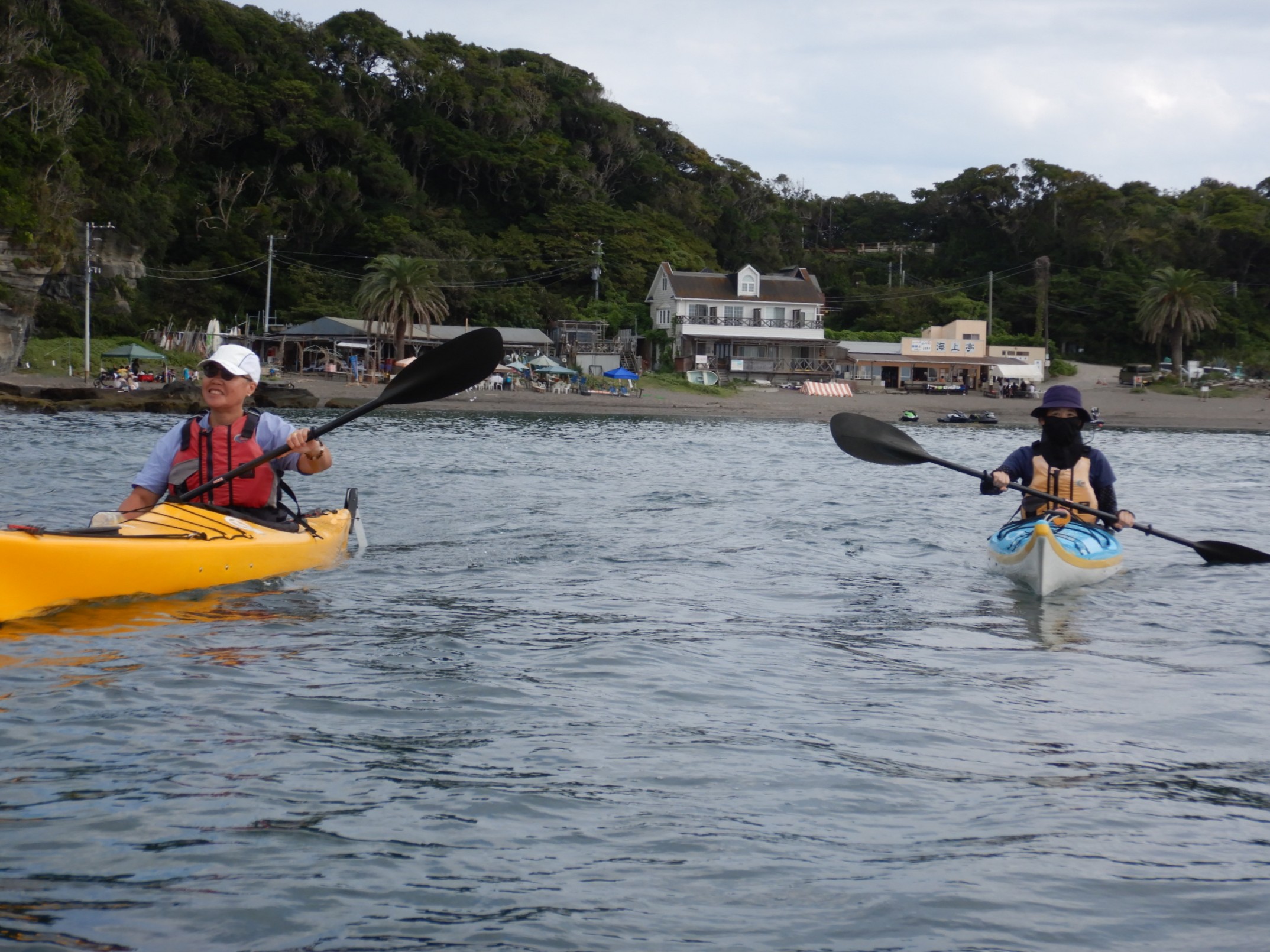 アマチュア時代からお世話になった下田のシーカヤックショップ「ワンダフルワールド」さんのキャンプサイトに泊まり、南伊豆のダイナミックなところを漕ぎました。