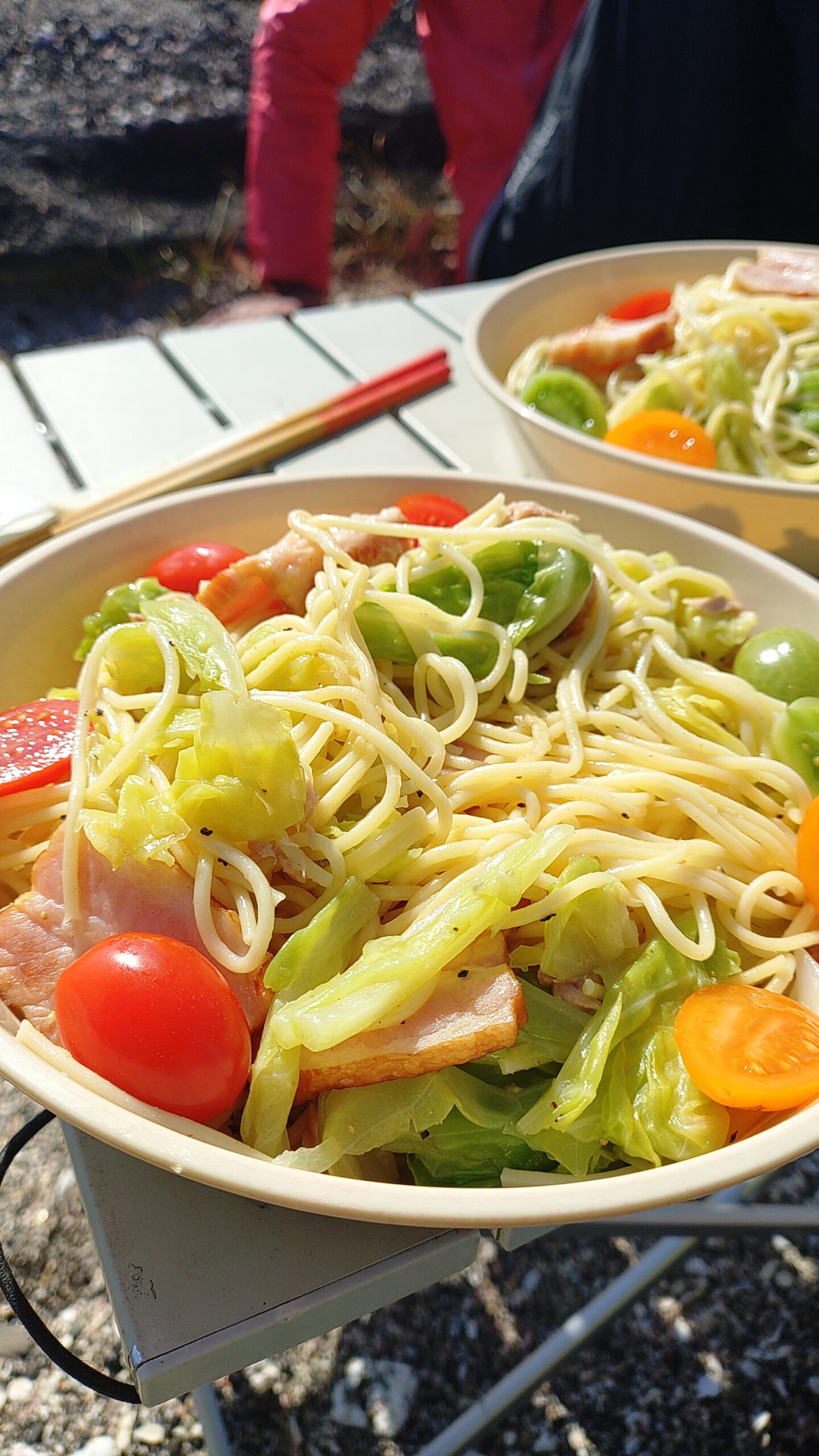 キャベツ、トマト、ベーコン&ツナのパスタ☆